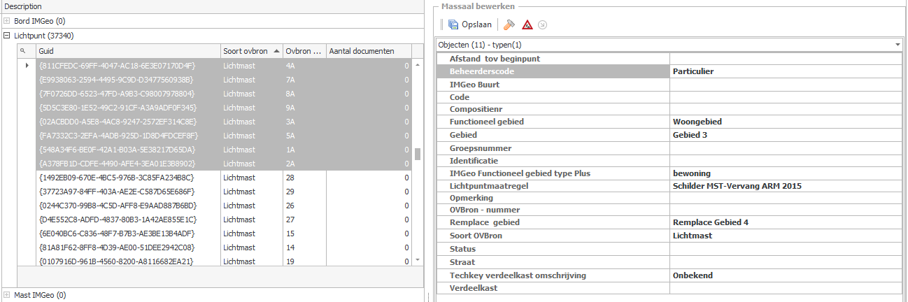 De beschrijving van de buitenruimte bevat enorm veel informatie, zeker wanneer we de buitenruimte integraal benaderen. Zelfs bij de kleinste beheerorganisaties gaat het al snel om duizenden assets, waarbij elke asset weer verschillende attributen en kenmerken bij zich draagt. Om snel wijzigingen aan te kunnen brengen in deze omvangrijke beheerdata, zijn bulkmutaties onmisbaar. Een bulkmutatie is een functionaliteit waarbij met één handeling de gegevens van meerdere assets worden gewijzigd. In gisib spreken we dan over het ‘massaal bewerken’ van assets. Deze functionaliteit biedt de mogelijkheid om zeer snel grote hoeveelheden mutaties door te voeren.